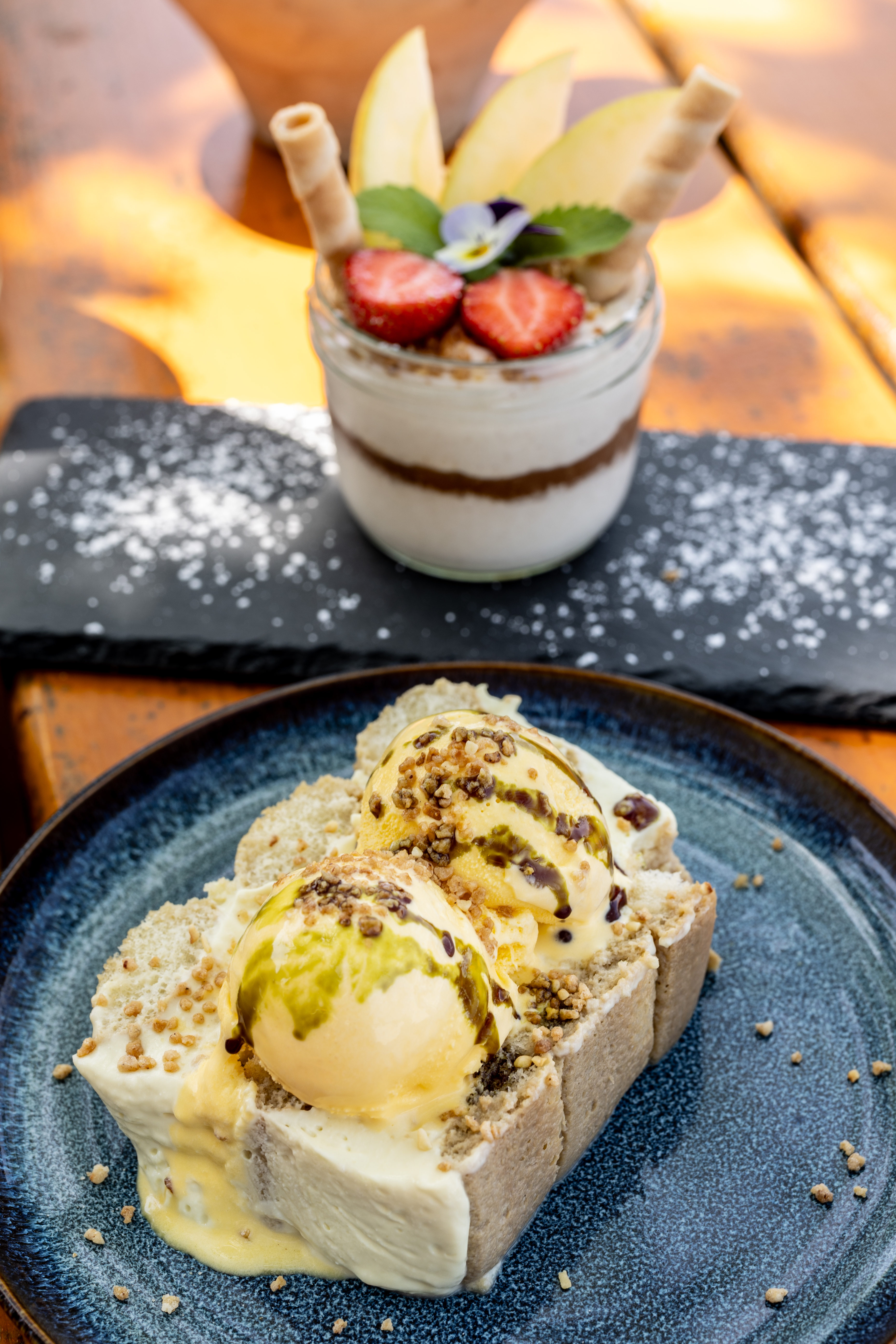 Zum krönenden Abschluss gibt es verschiedenste Desserts oder einen edlen, selbstgebrannten Schnaps.